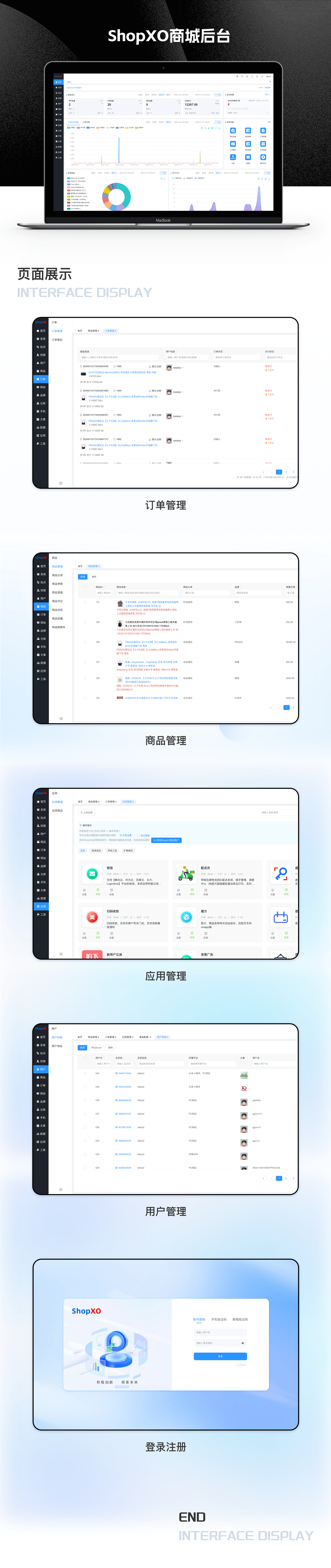 - 遵循MIT开源协议发布,无需授权、可商用、可二次开发、满足99%的电商运营需求。