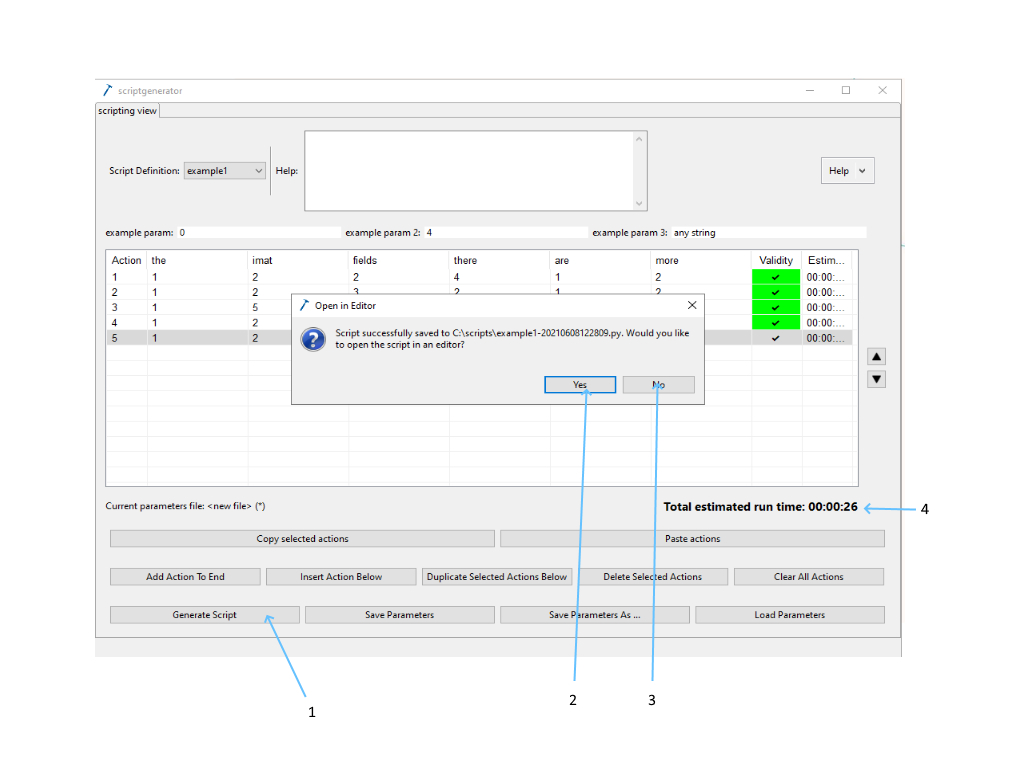 - Press the "Generate Script" button to generate a script from your experimental parameters and get a file message box pop up.