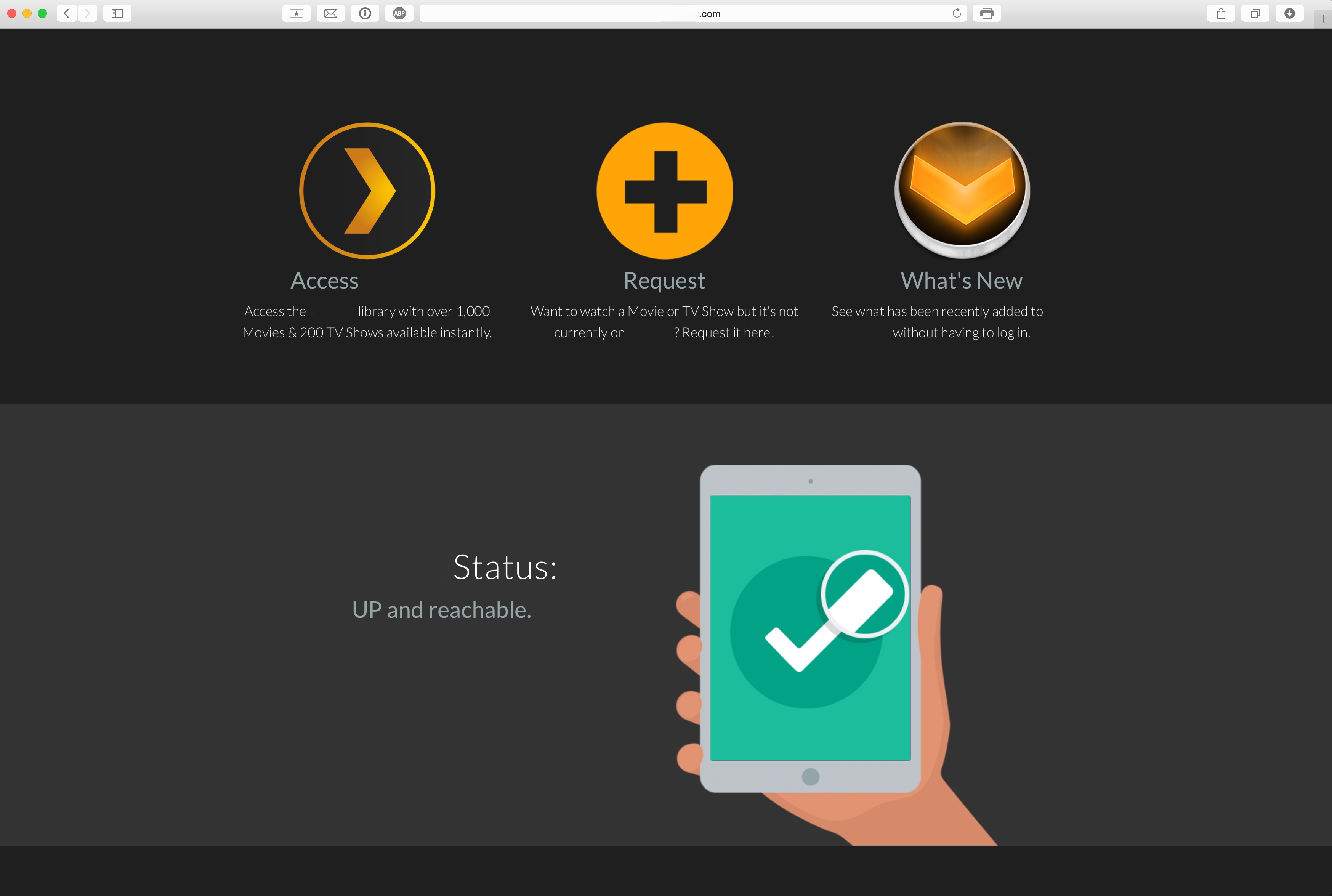 Ex: www.example.com points to x.x.x.x:xxxx/PlexRedirect. I then have a subdomain for PlexRequests (requests.example.com) which then forwards it to my public IP address and port x.x.x.x:3245 with masking. I did the same for the PlexEmail site (right now it takes you to a "Coming Soon" website since I haven't set up PlexEmail yet.) Clicking on the "Access Server," "Request," and "What's New" redirects you to those addresses.