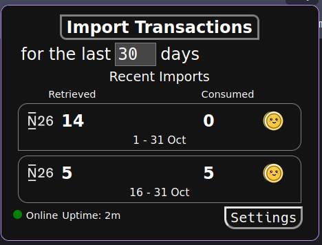 - Execute a binary on your local computer that retrieves transactions from N26 and inserts them into LunchMoney with some terminal output. (standalone mode)