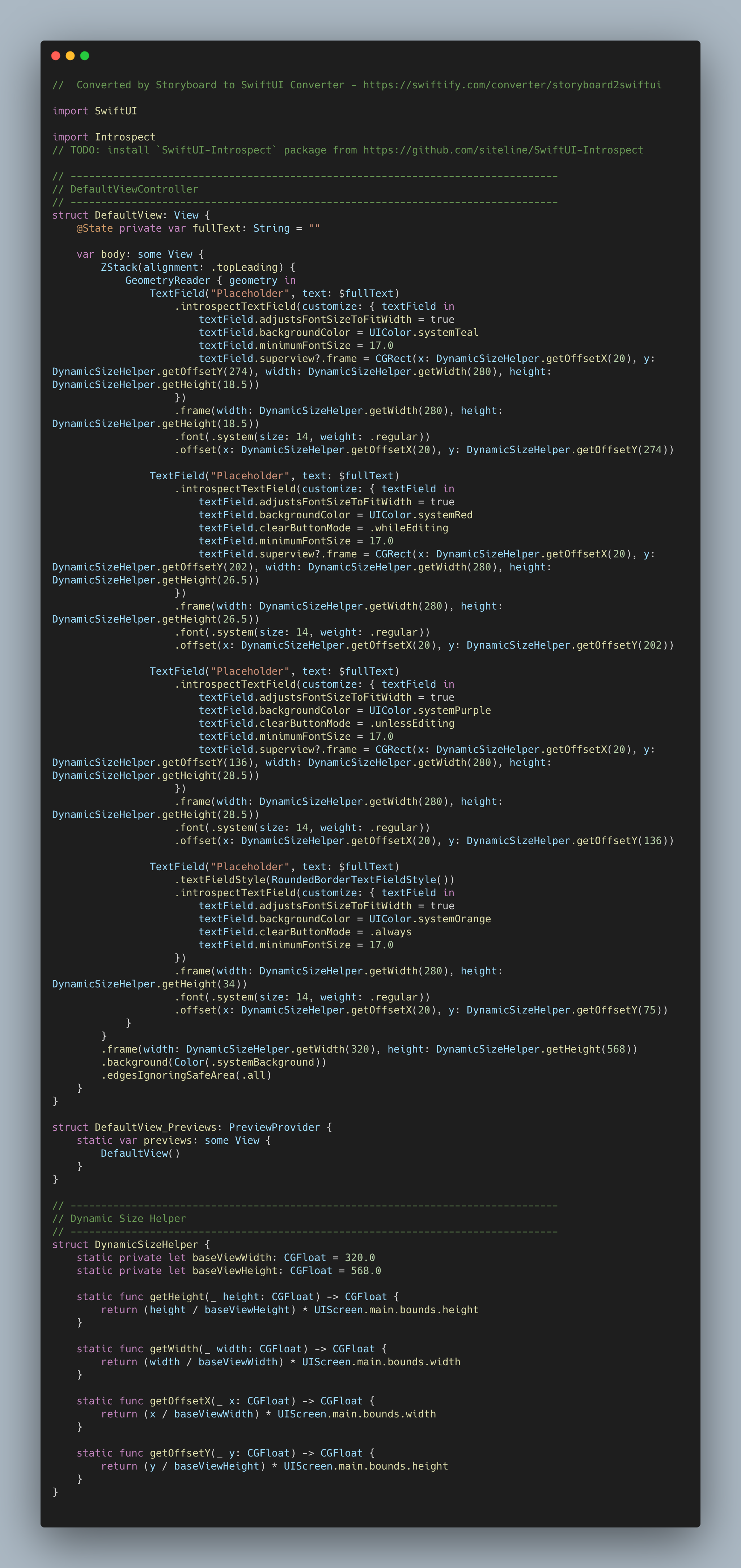 . frame(width: DynamicSizeHelper. getwidth(320), height: DynamicSizeHelper.getHeight(568))