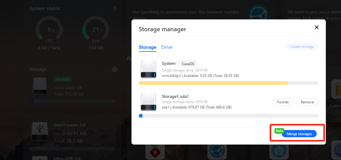 i can't find where the buttom is to merge storages,