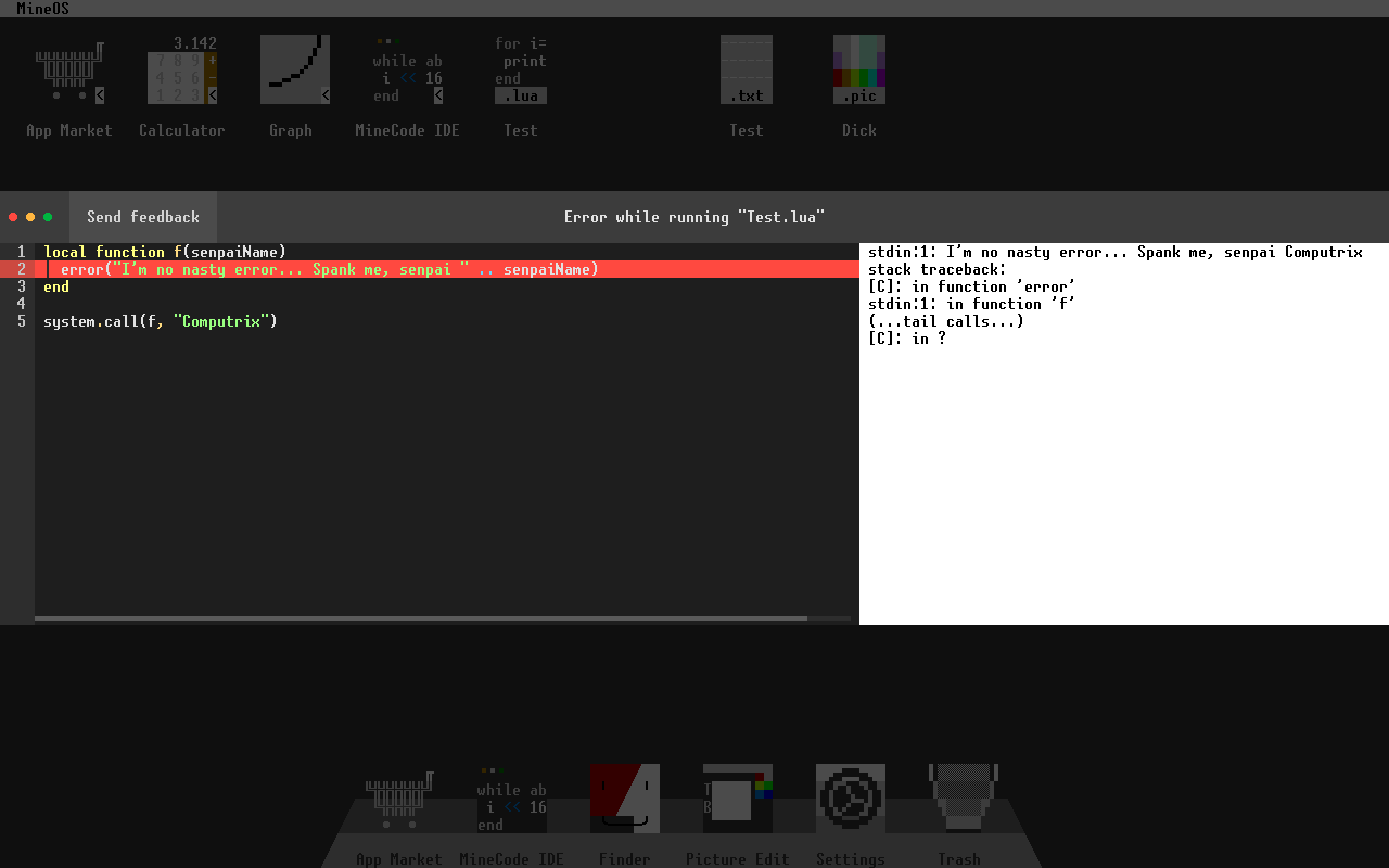 system.error("/Test.lua", 2, [[stdin:1: I'm no nasty error... Spank me, senpai Computrix