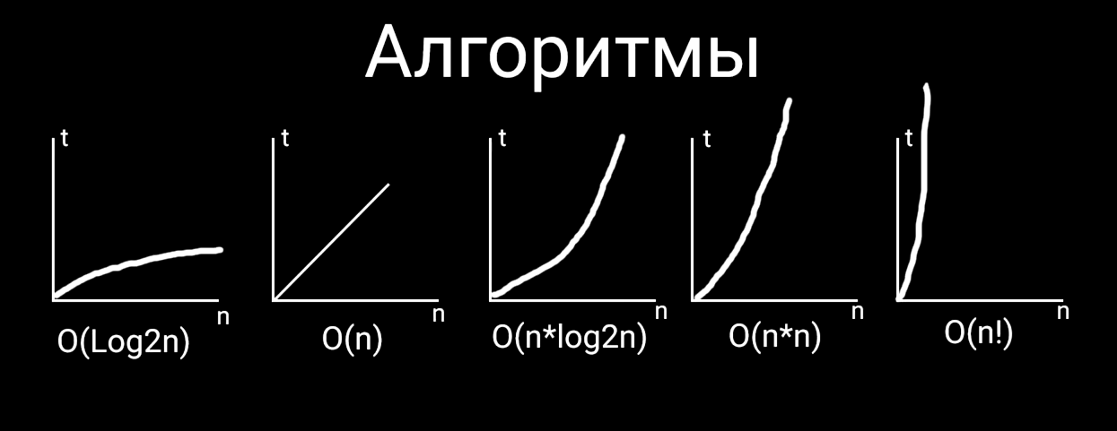 - O - о большое, по сути аннотация сложности или скорости алгоритма, на оси это t- время. n - количество операций(всегда указывается максимальное кол-во итерации, то есть наихудший сценарий)