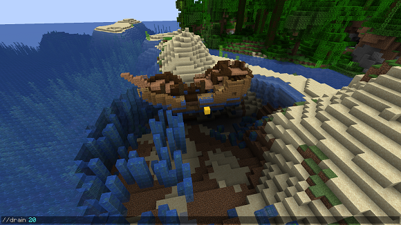 //drainthis command will only execute for blocks in the same water pool or hole: if you have another water pool or hole inside your radius, it will be ignored (picture 3).