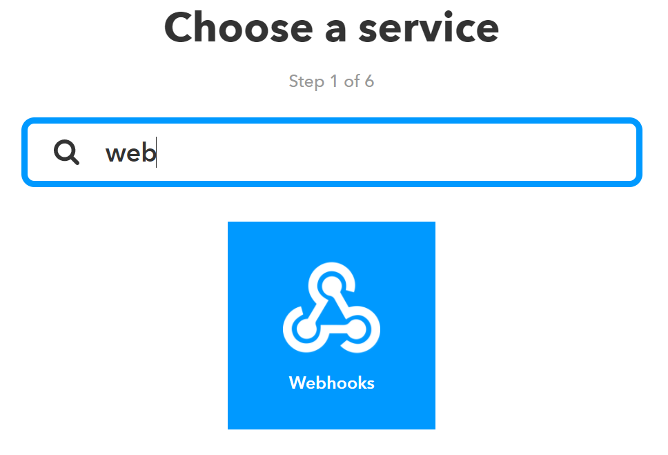 - Идем на IFTTT.com/create, в графе This выбираем Webhooks, потом Receive a web request