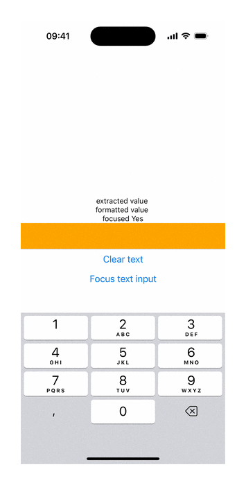 Callback function triggered on text change. Receives formattedValue (with mask), extractedValue (raw input) tailPlaceholder (tail placeholder whish is calculated by entered value) and complete (flag shows if the extracted value contains all the mandatory characters). |