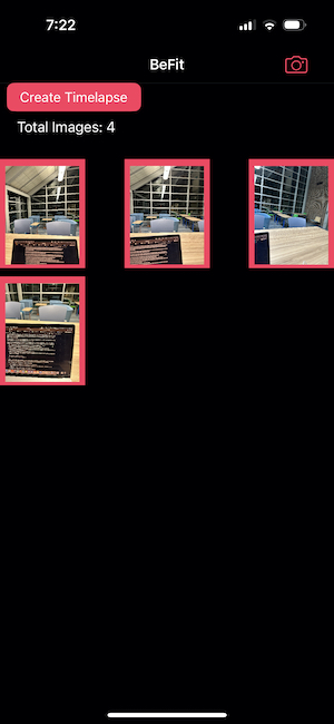 BeFit is a personal development and goal tracking iOS mobile app. Users take photos within the app and when they feel fit, can generate a timelapse of their progression. BeFit uses Apples Capture API to gain access to the camera features.