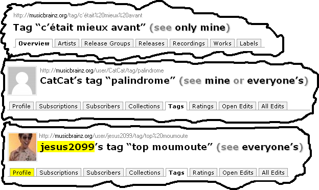 Allows to jump from your (or other’s) tags and everyone’s tags and vice versa with only the magic of one click.