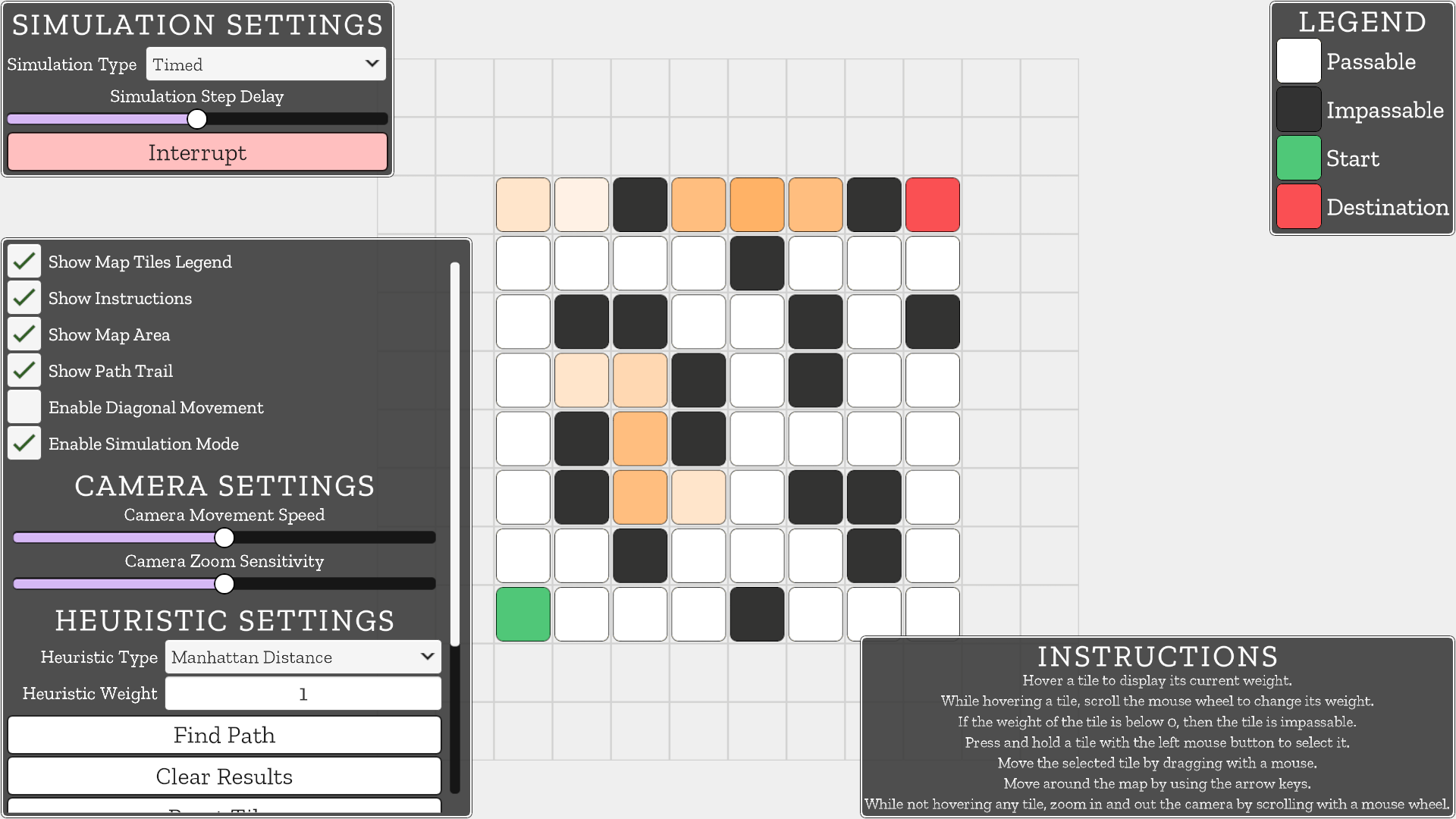 - Changing tiles type (passable/impassable) depending on their weight (if it is below 0, then the tile is impassable)