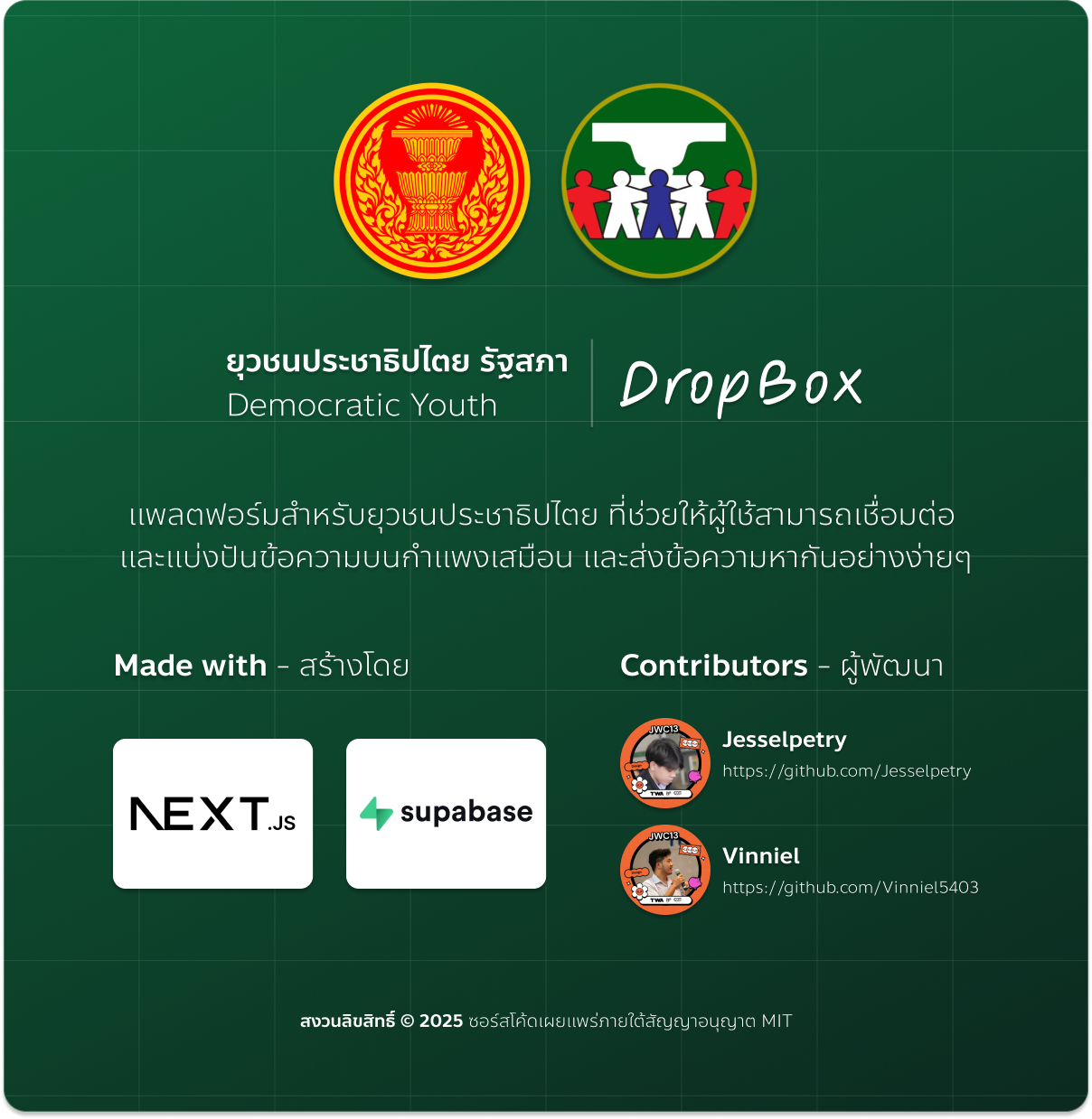 D-Youth Dropbox: A platform for democratic youth that allows users to connect, share messages on a virtual wall, and easily send messages to one another.