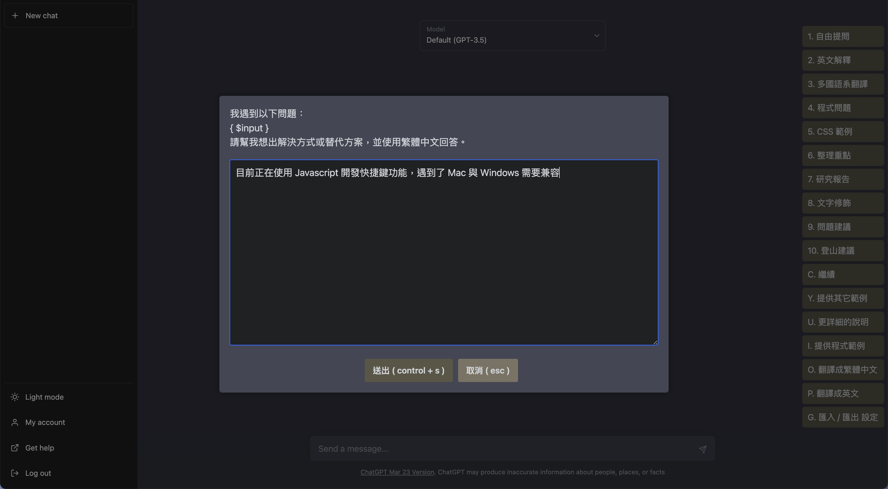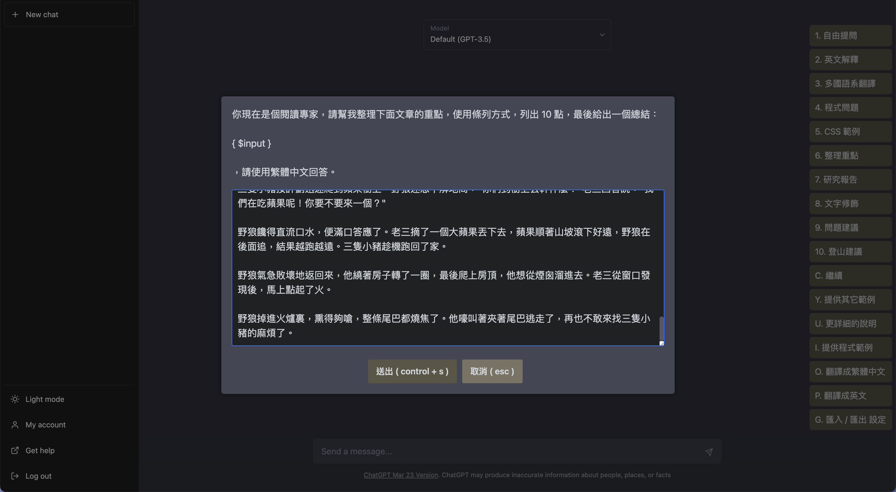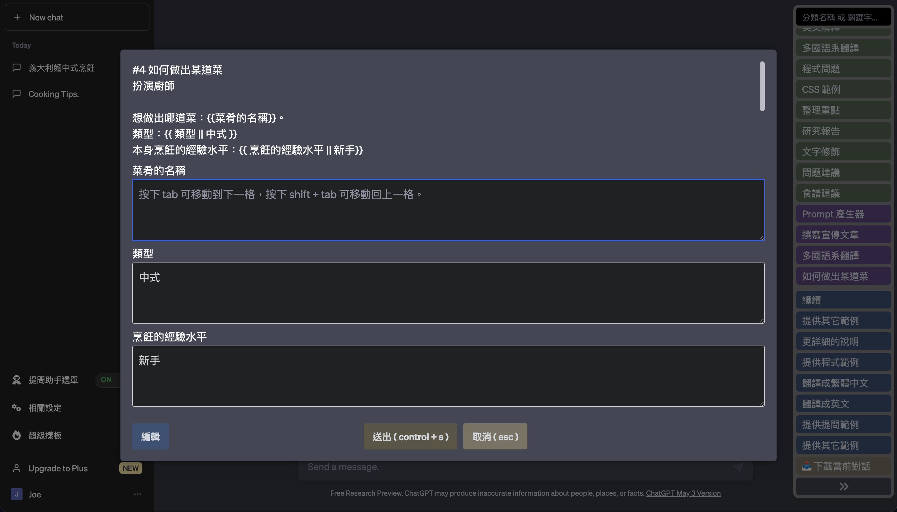 此工具能夠幫助您更有效率地與 ChatGPT 進行對話,並提供了多種問題範本、快速回覆文字,以及方便的快捷鍵功能。