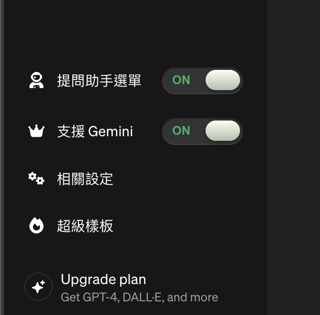 - 增加 支援 gemini 使用 ChatGPT 提問助手的樣板