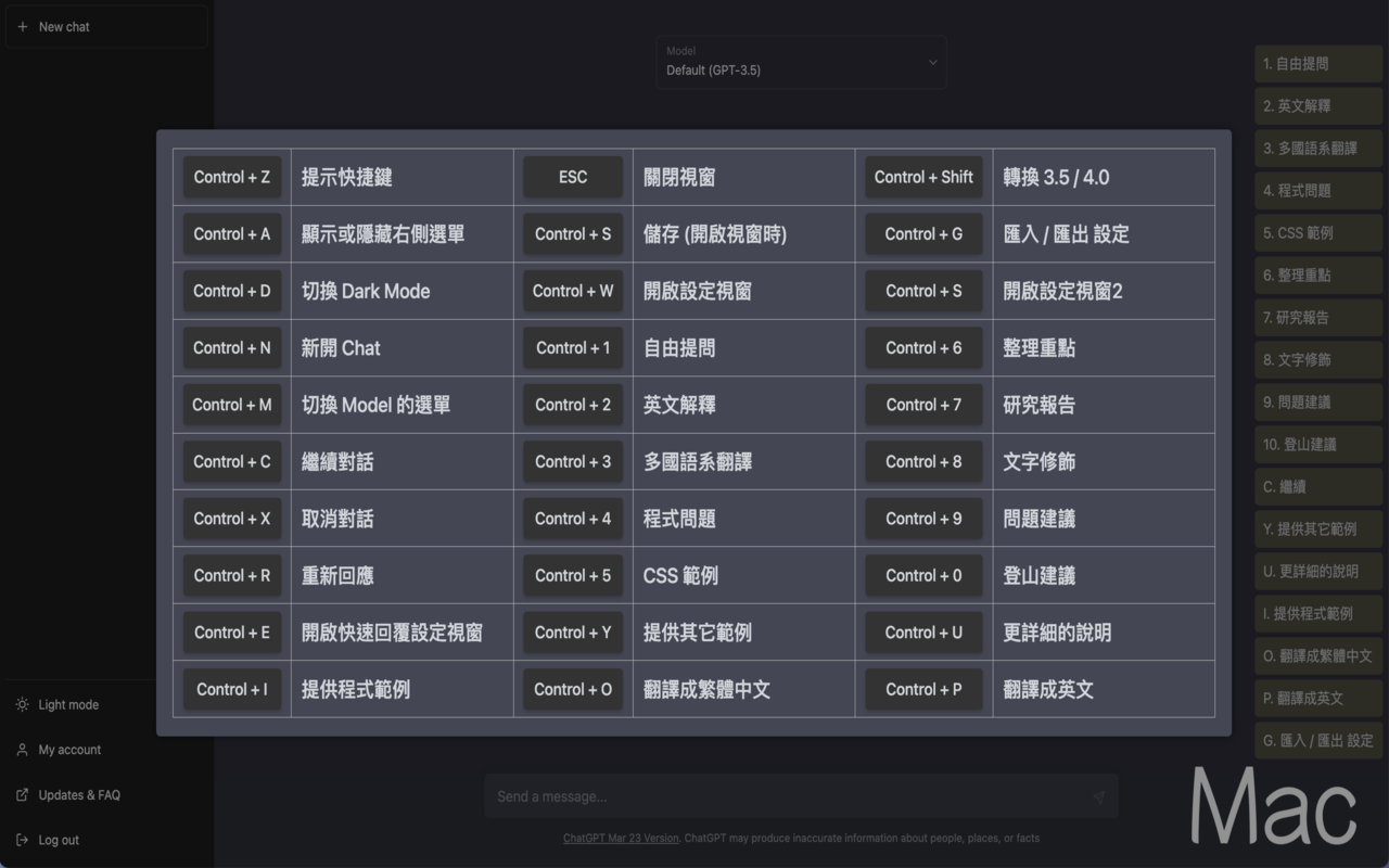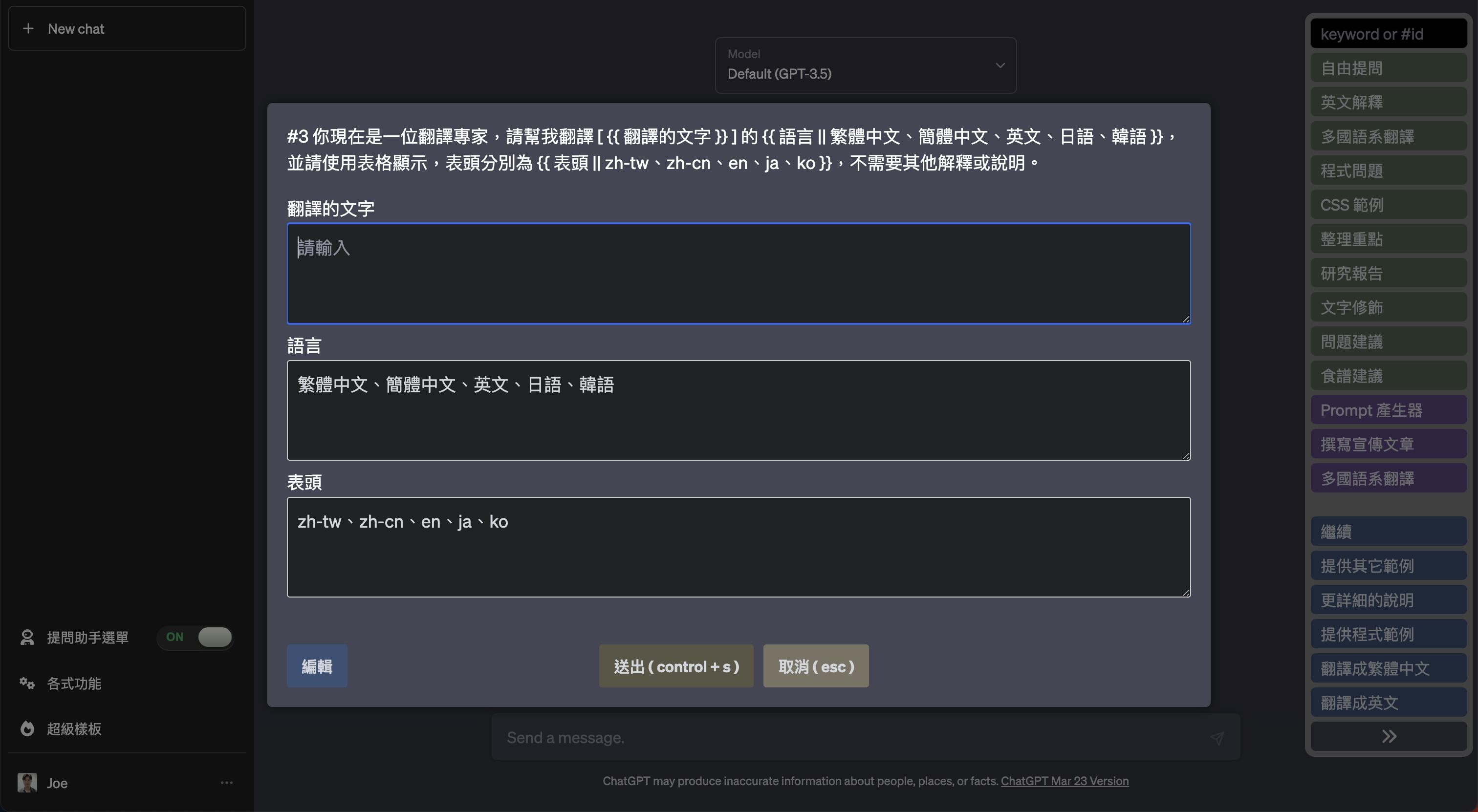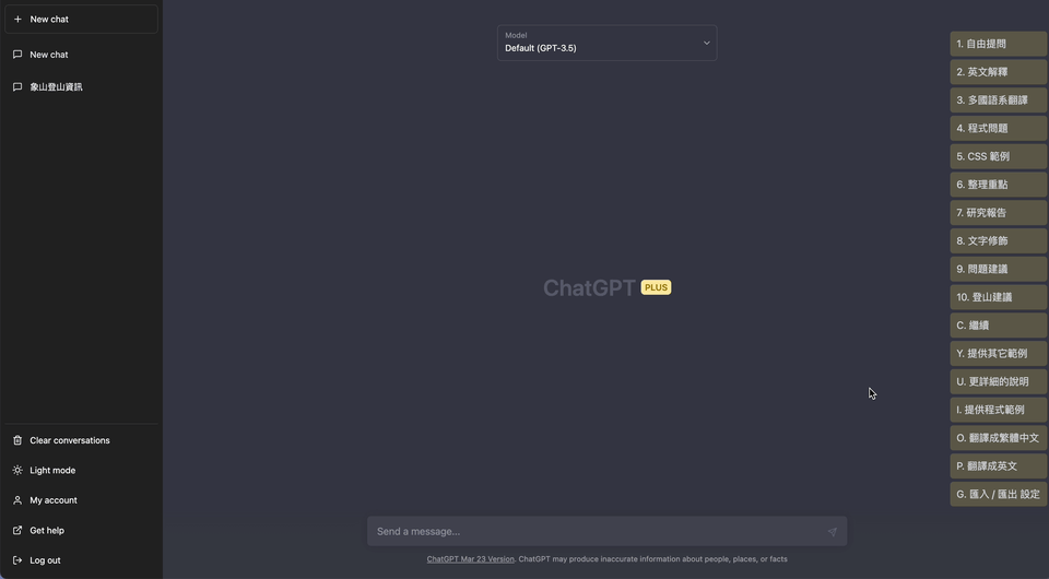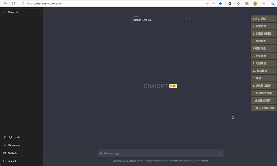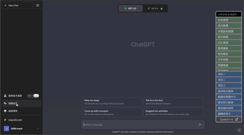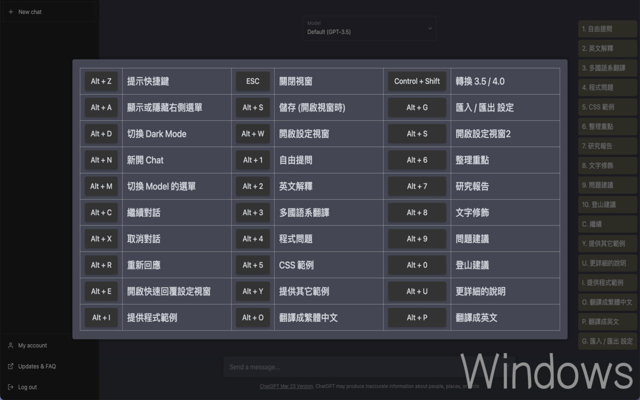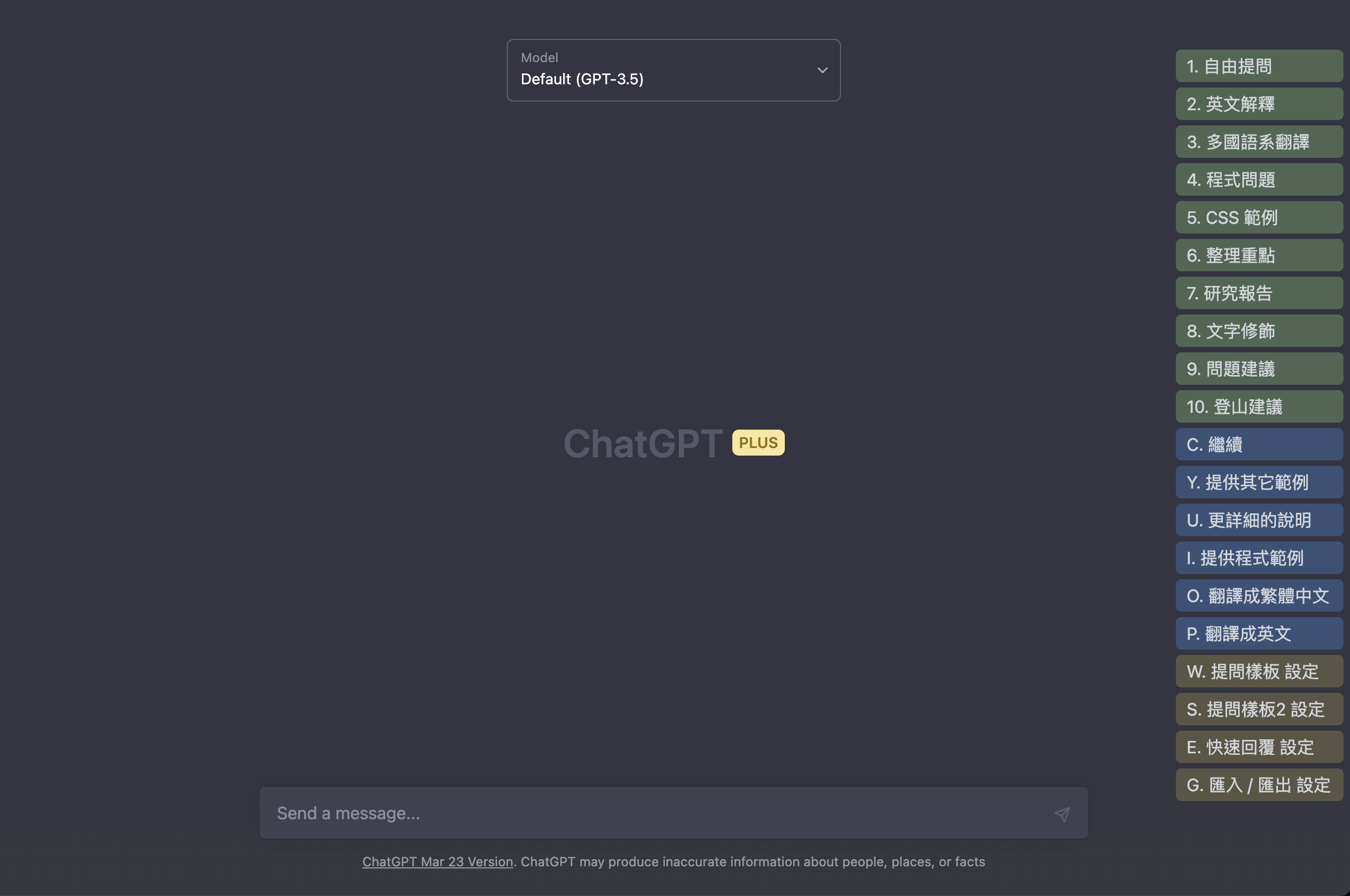 請注意:本工具僅提供 輔助對話 和 快捷鍵 功能,並不包括 ChatGPT Plus 的使用。如果您需要使用 ChatGPT Plus,請自行前往官方網站訂閱。