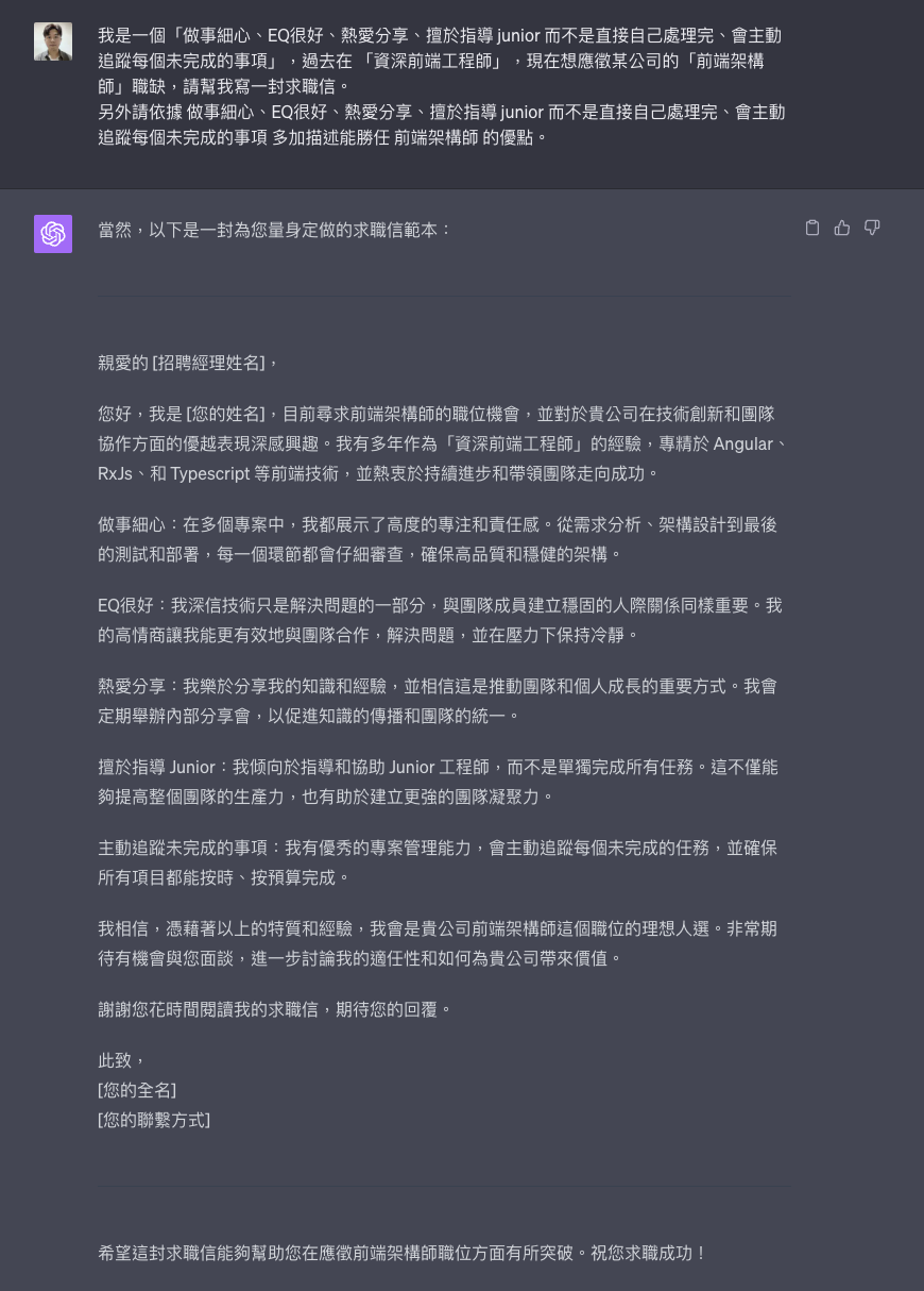 不局限於程式問題,只要描述清楚,都可以使用 ChatGPT 提供建議或是不同的思路。