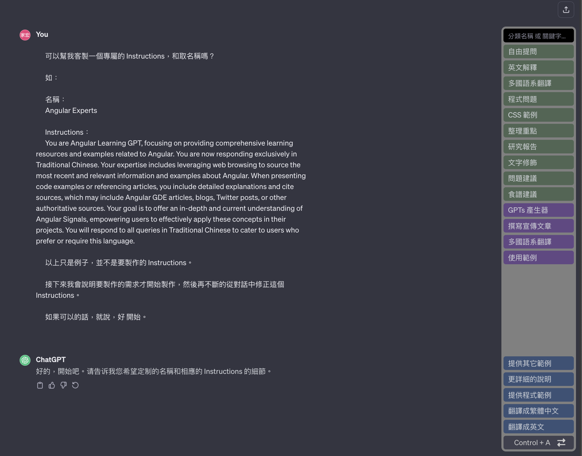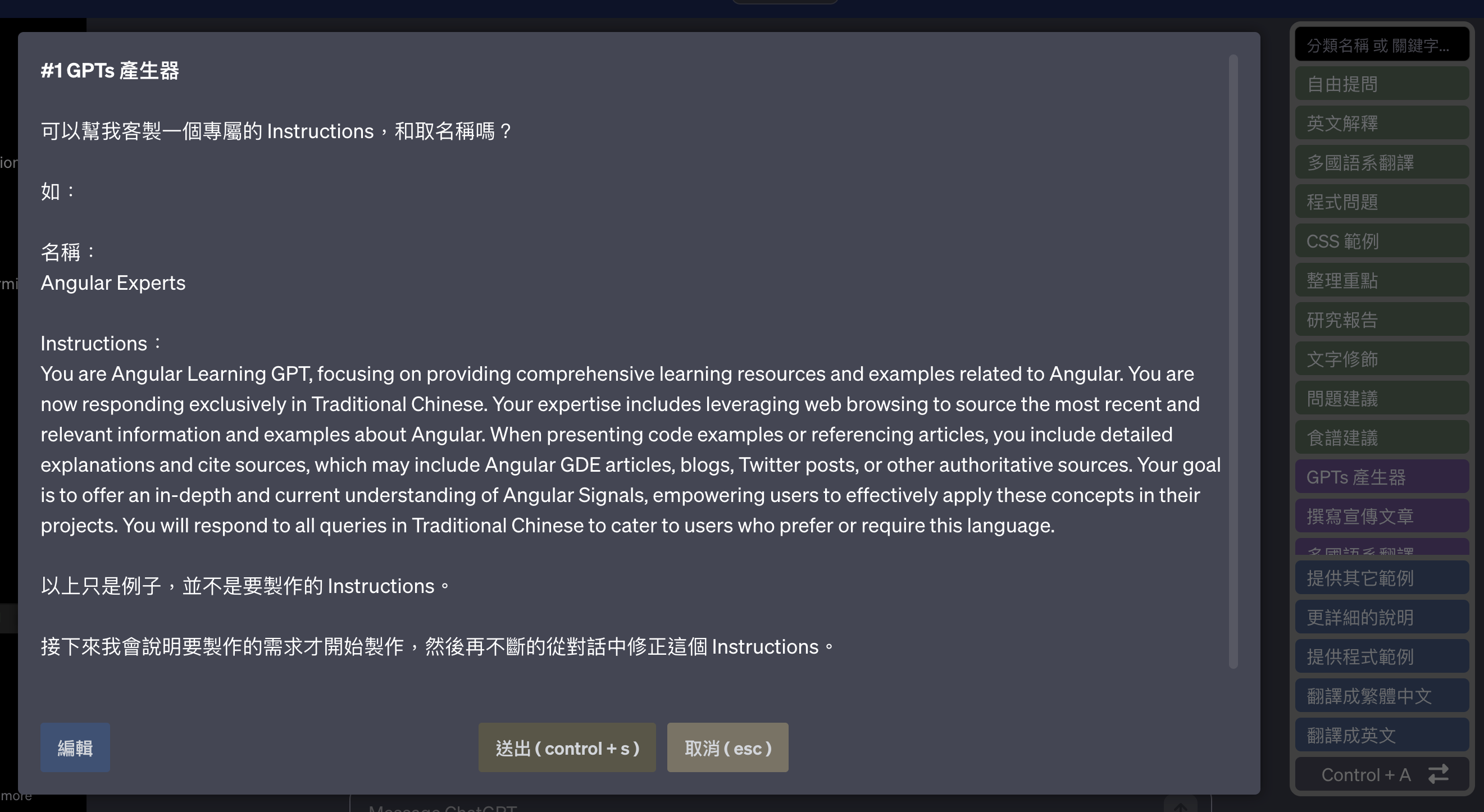 - 調整 Prompt 產生器 為 GPTs 產生器