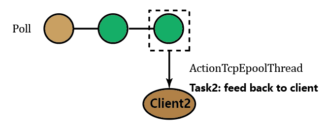 到这一步时,如果有信息需要送回客户端,则事件分派器将信息打包好,添加到poll链表中,这就承接了(2)中介绍的poll链表第二个功能: