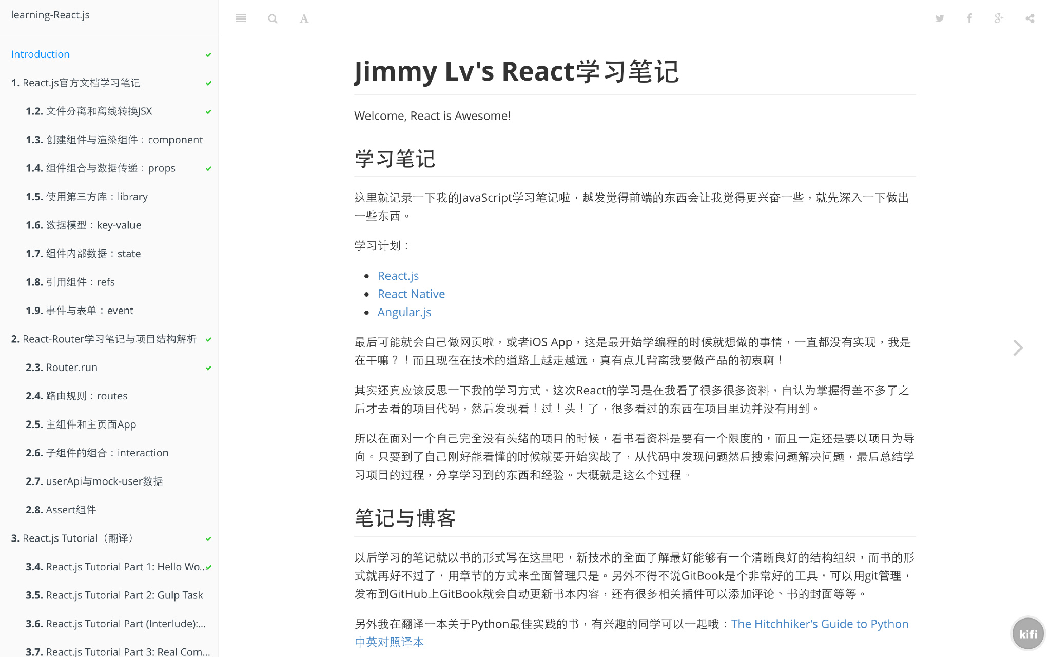 另外不得不说 GitBook 是个非常好的书籍编写工具,可以用 Markdown 语法写作,git 管理,网页与客户端都做得不错,甚至可以甩其他的一些原生 Markdown 编辑器几条街。