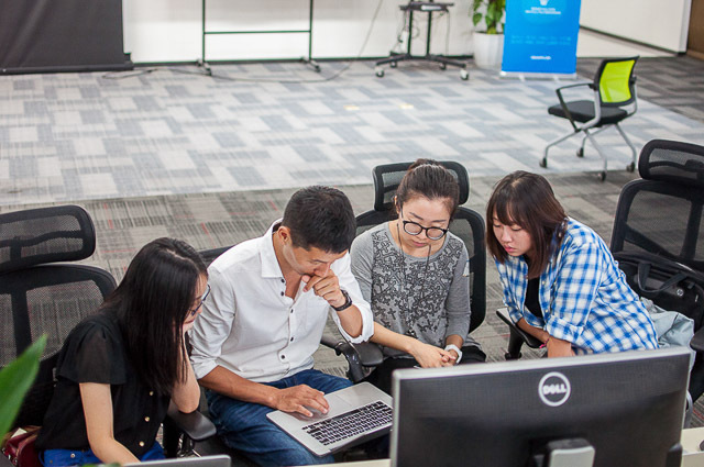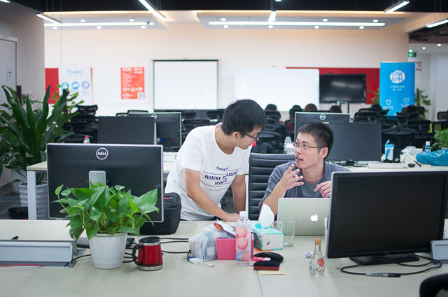 教练们一到这里就开始互相交流,打开电脑搭建环境,思考一整天的 Coach 之旅将如何更好地引导和激发姑娘们的编程兴趣。