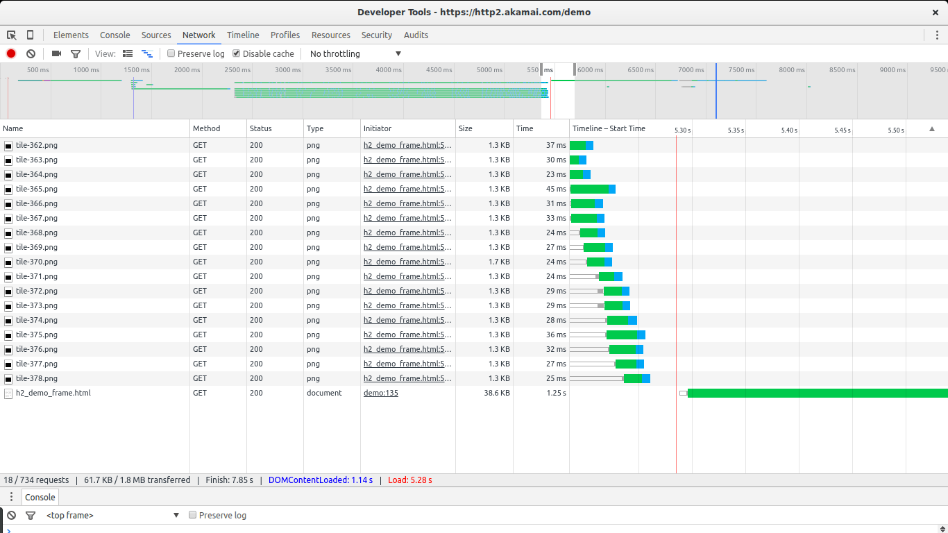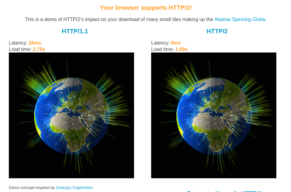 越来越多的浏览器都开始支持 HTTP/2。这可能听起来没有必要,但是 HTTP/2 为同一服务器的并发连接问题带来了很多好处。换句话说,如果有很多小型资源需要加载(如果你打包过的话就没有必要了),在延迟和性能方面 HTTP/2 秒杀 HTTP/1。试试 Akamai 的 HTTP/2 demo,可以在最新的浏览器中看到区别。