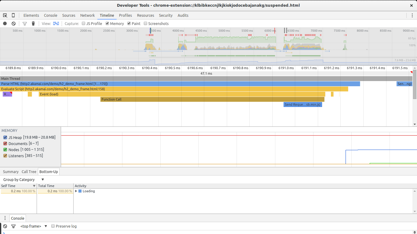 对于 Web 应用来说,延迟时间是最大的抱怨之一,所以你需要确保数据的加载和显示都尽可能得快。Chrome 提供了非常棒的性能分析工具。特别是 Chrome Dev Tools 中的时间线和网络视图都对于定位延迟问题有着很大的帮助: