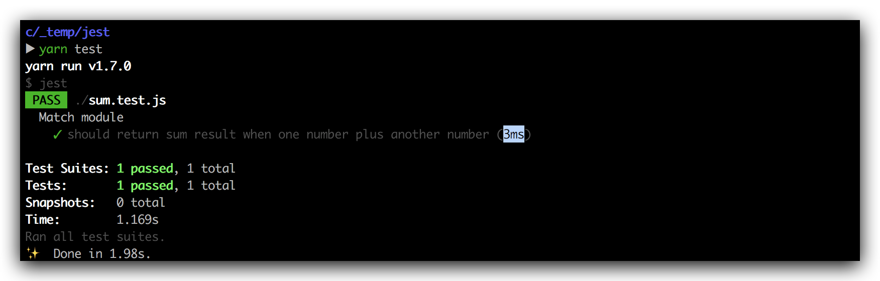 然后运行 yarn test (添加 NPM Script)你就可以看到相应的结果。