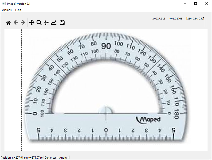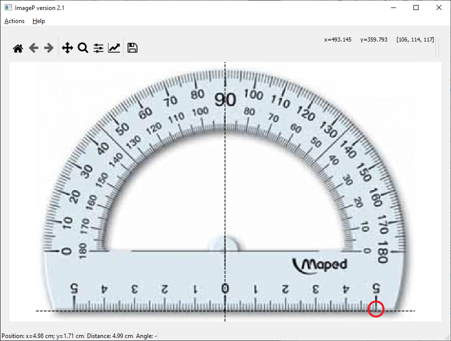 It is essential to define the pixel size in order to make measurements based upon the picture. Usually you make a calibration measurement or have a defined length within the frame of your picture. Here, we can simply use the fixed interval of 1 cm on the protractor.
