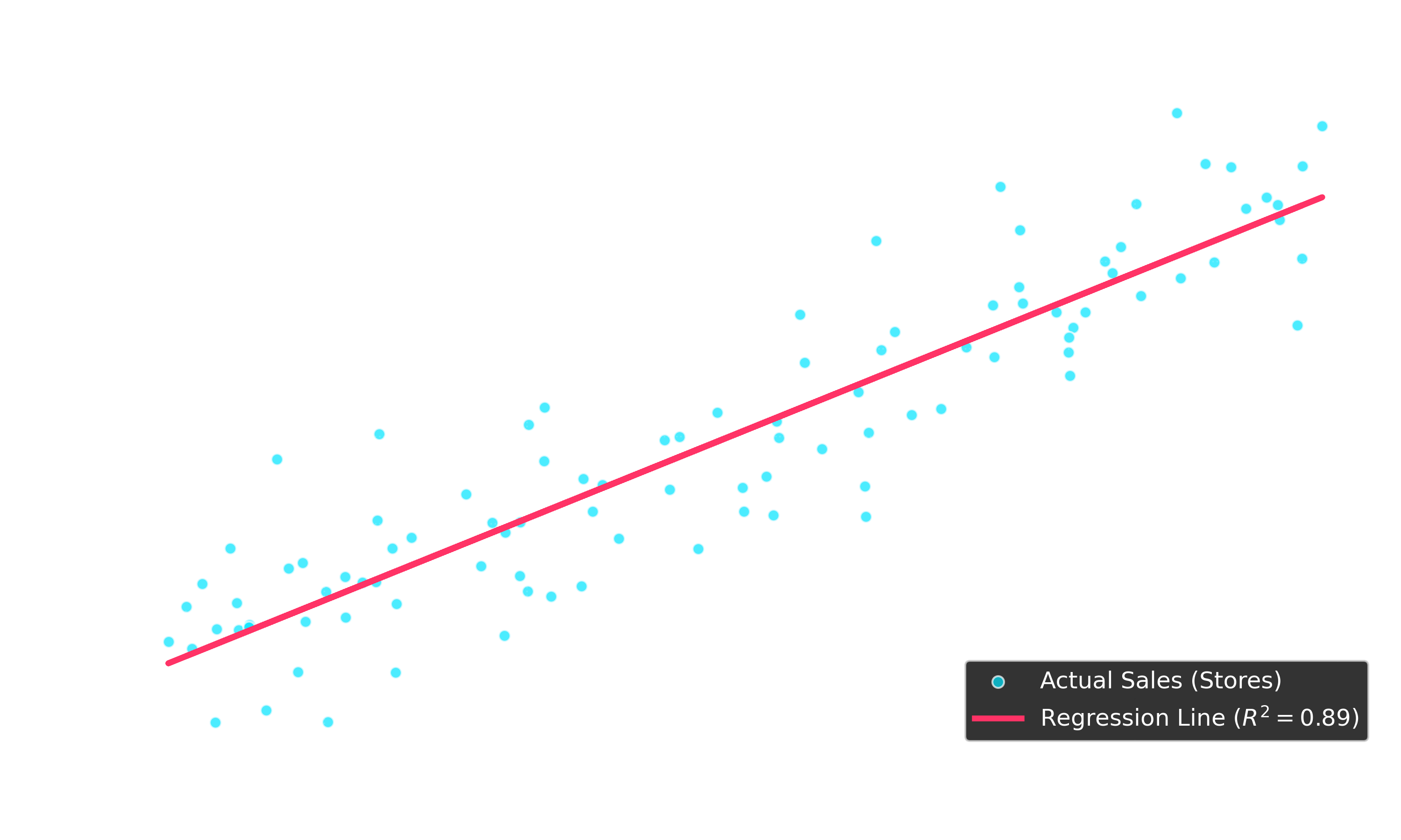 - The Linear Regression model correctly captures the relationship with a high R-Squared (