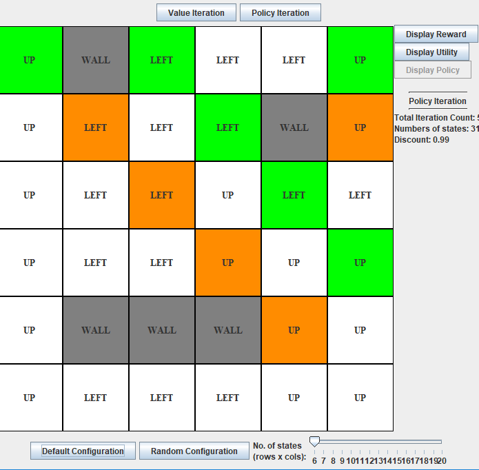 - Click on 'Value Iteration' or 'Policy Iteration', the program will generate a plotted graph visualization in a new window.