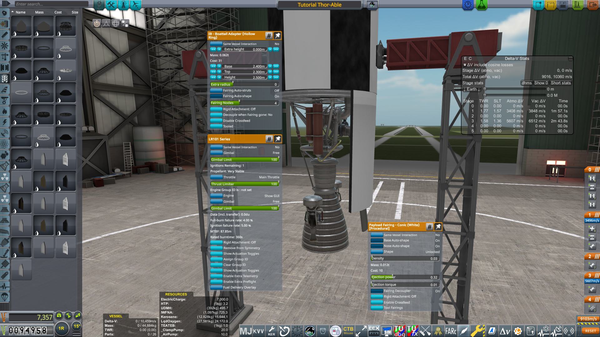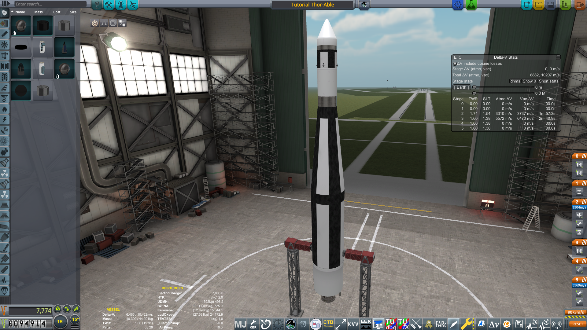 This evolution is one of the reasons the tutorial uses the Thor-Able. Both engines have many upgraded variants which become available as you progress down the tech tree, so this design is a great starting point. You'll begin to see the utility of changes that were made historically, such as stretching fuel tanks, swapping out engines, adding SRBs to the first stage, and increasing the diameter of the upper stage. Thor-Able eventually led to Thor-Delta, which eventually became just "Delta". Kerolox-burning Delta rockets flew for decades and lofted many noteworthy payloads, including GPS satellites and interplanetary probes, such as Mars Pathfinder.