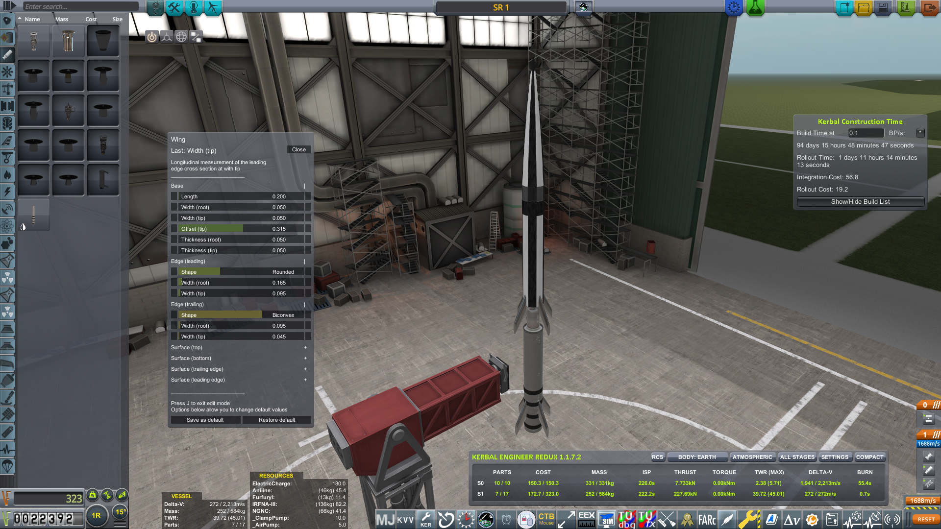 Routinely rushing rocket builds, which was a valid tactic in older versions of RP-1, is now much more expensive and therefore no longer as appealing of an option. While there may still be a limited role for rushing in a competitive race into space, its use in a typical career should generally be reserved for those rare occasions when you're in danger of missing a contract deadline.