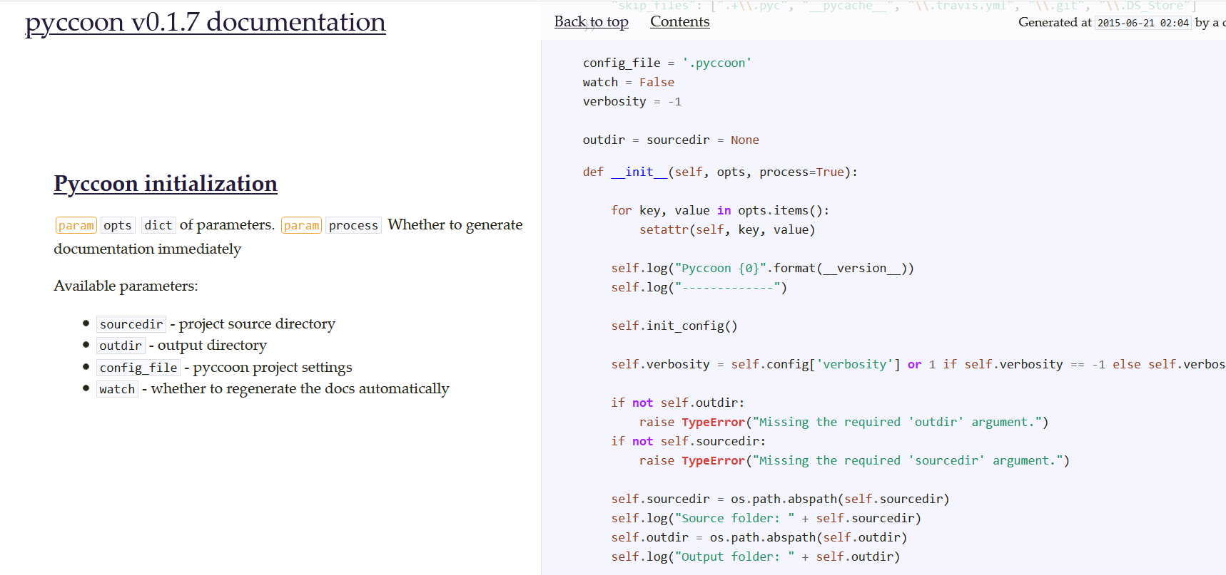 Docstrings and source comments are displayed alongside their relevant code sections. Any markdown files found in the same folder are added to the page. Markdown comments are supported.