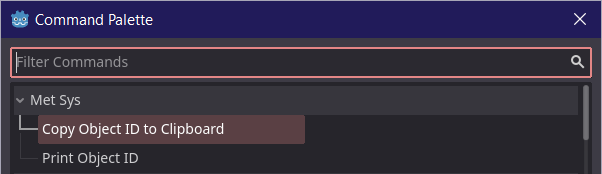 Object IDs can be accessed from the editor. Select Tools -> MetSys -> Cooy Object ID to Clipboard and it will copy ID of the selected node.