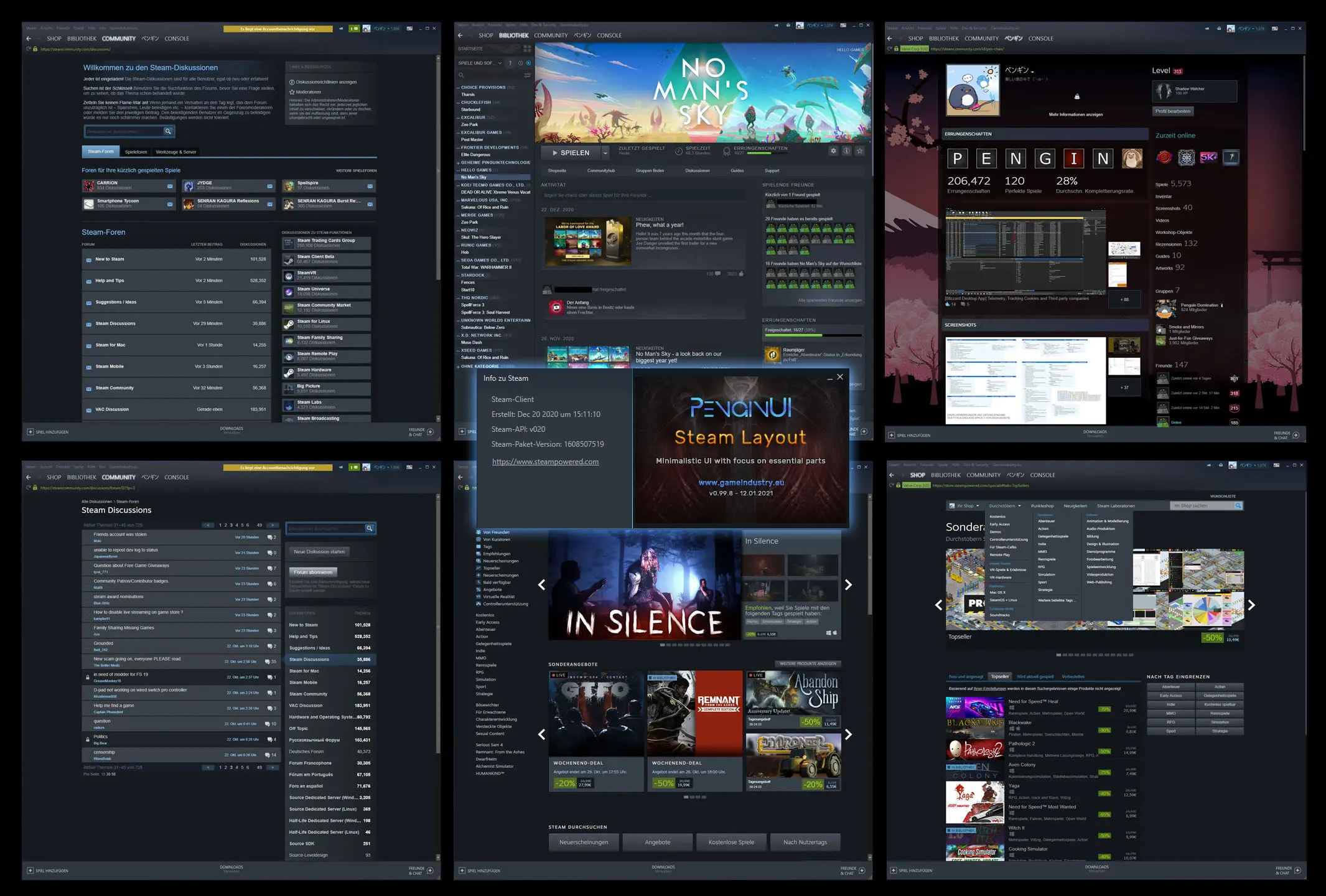 - Some Steam-library theme changes ( e.g. stopped animations, removed broadcasting), removed backgrounds and some graphics