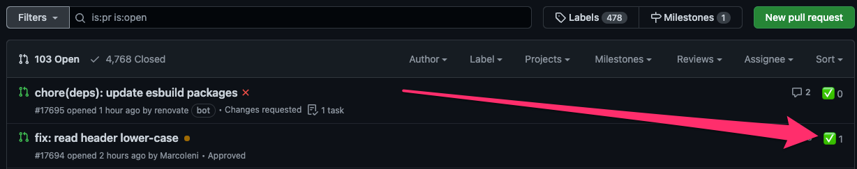 pr-approve-count Chrome extension to display the number of approvals on the GitHub pull request list page.