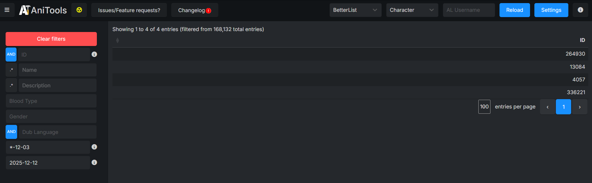 When I fill out the character birthday filter i get the following error <img width="1891" height="977" alt="Image" src="https://imgur.com/RXe2JFi.png" /> only seems to occur when you put a full year in the starting date and does not occur if you use a wildcard (see below) <img width="1891" height="977" alt="Image" src="https://imgur.com/iCSitlM.png" />