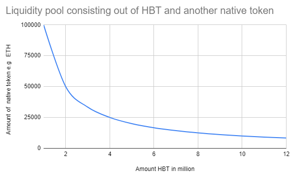 Amount of HBT * amount of native token= K With K a constant