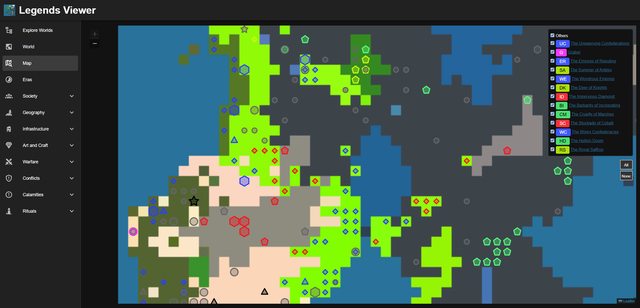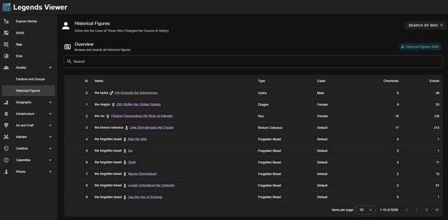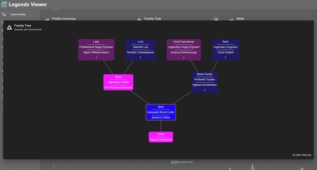 LegendsViewer-Next is a tool for visualizing the rich history and data generated by the game Dwarf Fortress. This reboot of the original LegendsViewer is designed to work with the Steam release of the game and leverages modern technology, including a .NET 8 backend and a Vue 3 / TypeScript frontend.