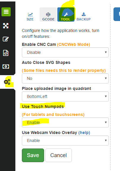 When you click on an input field (like the gcode entry field in the Console) it pops up a custom keypad, instead of your device's onscreen keyboard) for a more user friendly input method while using a touchscreen
