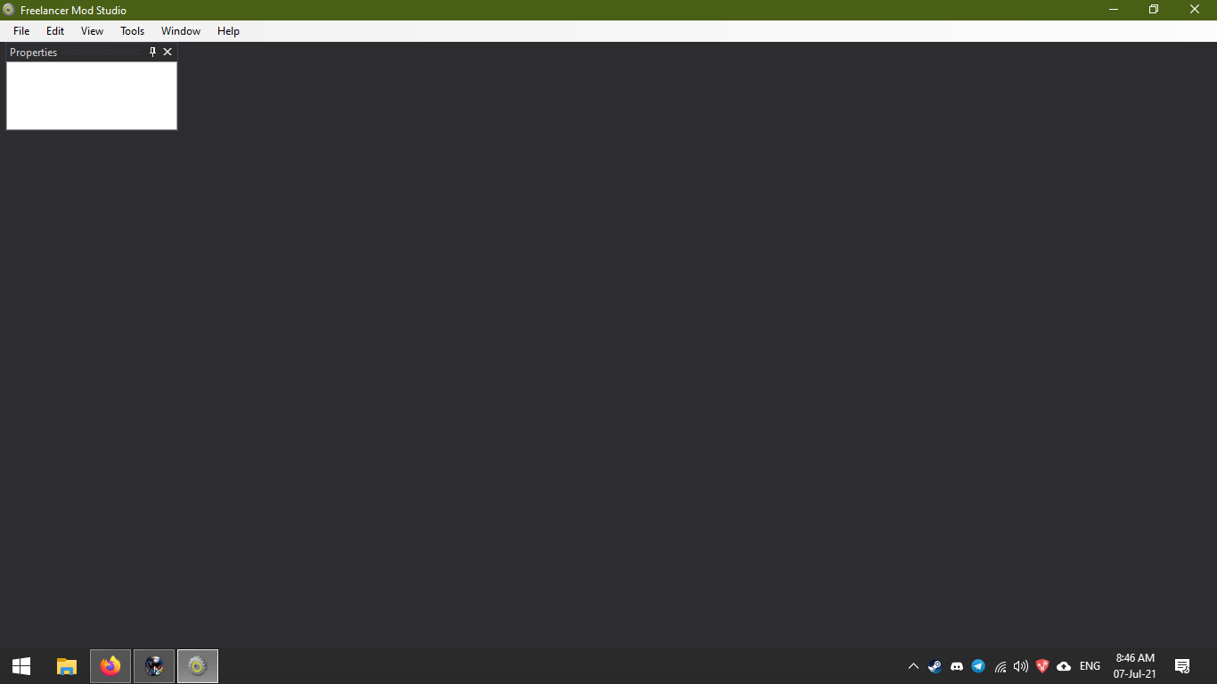 Sometimes, FLMS can't read files and appearing like on screen. Fixing is requiring removing FreelancerModStudio.Layout.xml at .../AppData/Roaming/Freelancer Mod Studio and restart of FLMS. Locking the file to read only does not help.