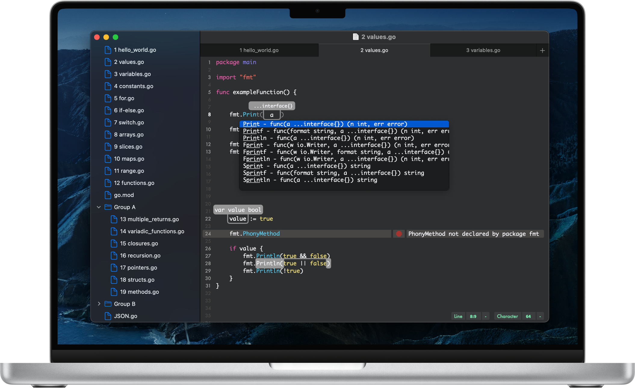 - Go language.