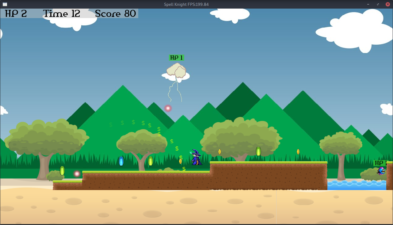 Spell Knight is a run and gun platformer. The aim is to get to the portal at the end of the level as quickly as possible without dying.