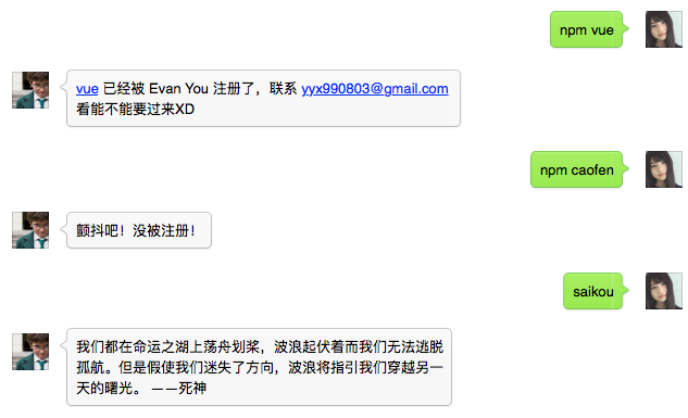 GenieHack 属于 Geek/Hacker 的微信公众(订阅)号 查看常用命令 添加一个新的命令 Example 我们的宗旨是像使用命令行一样使用微信: License MIT © PixelCat