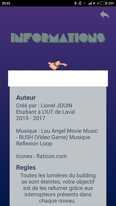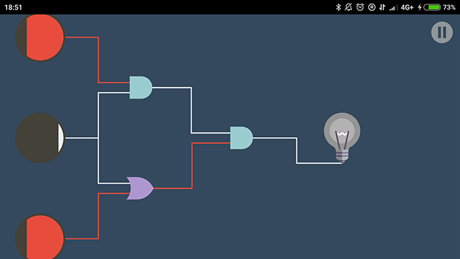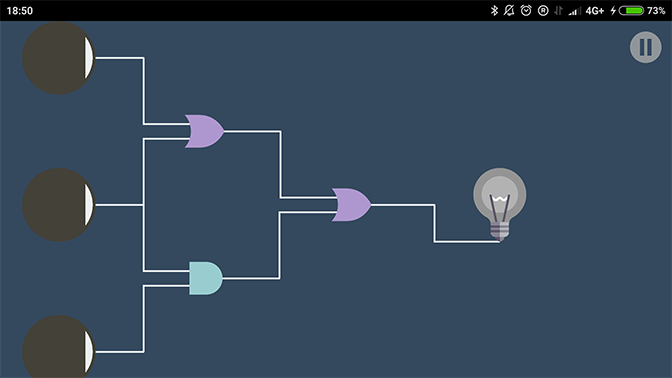 Logic gates' puzzle game for Android. The goal of this game is to turn on all the lights of the building by changing the state of the switches. There are 15 increasing difficulty' levels.