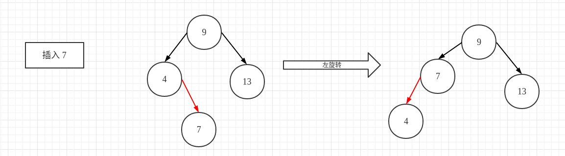 红黑树:同样的,插入的目标节点在 7节点,由于插入的位置在右子节点,因此需要对 7节点进行一次左旋转