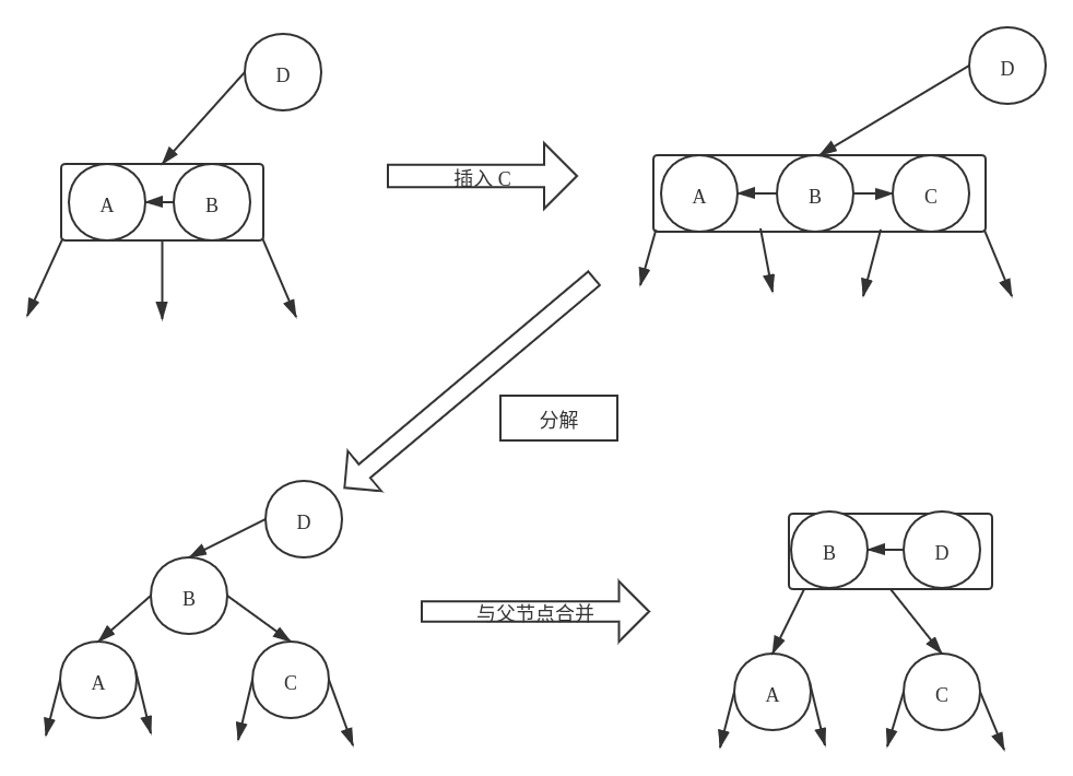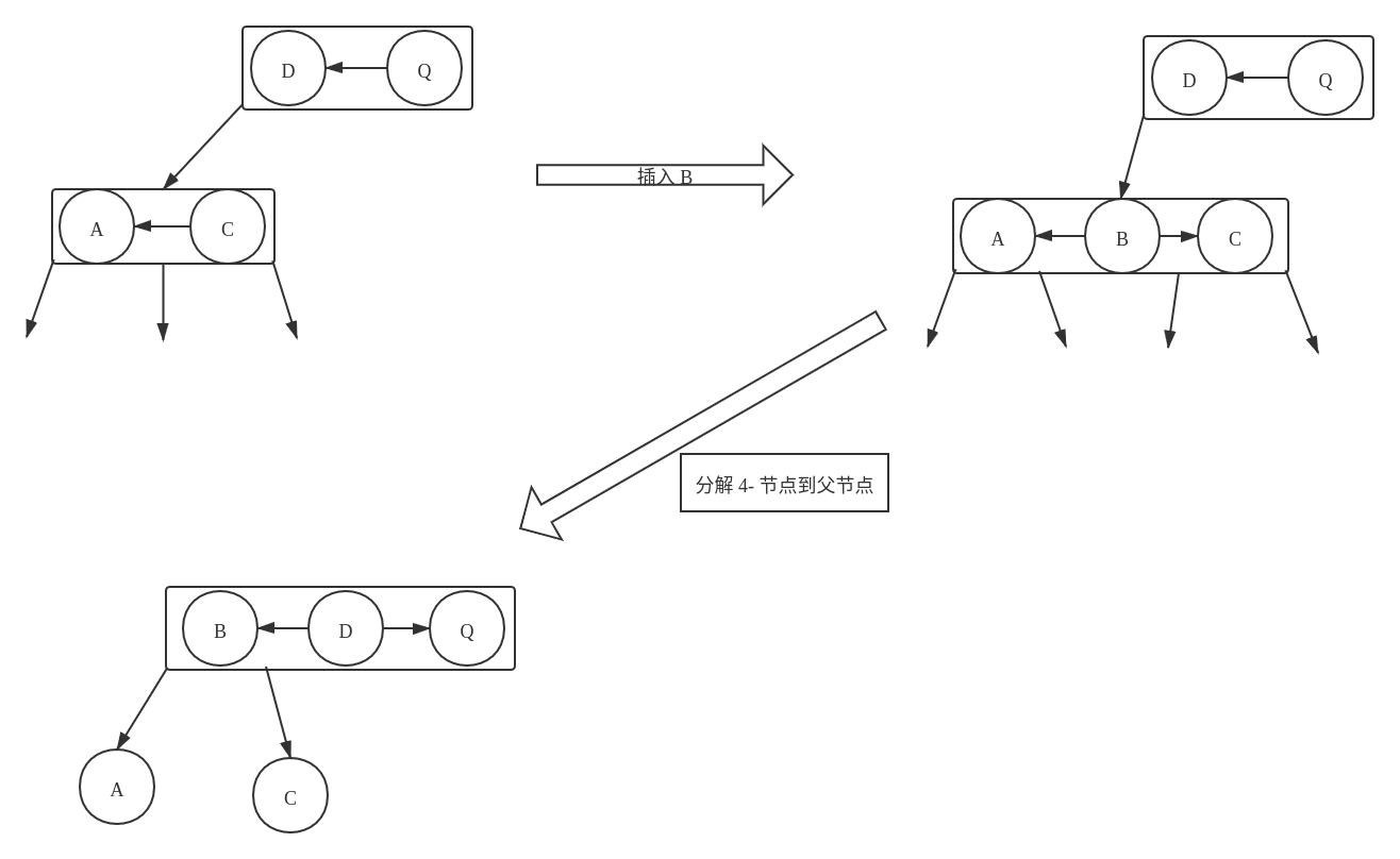 这种情况下可以将父节点从原来的节点中剥离出来,使得父节点、当前节点、兄弟节点重新构成一个新的 4- 节点