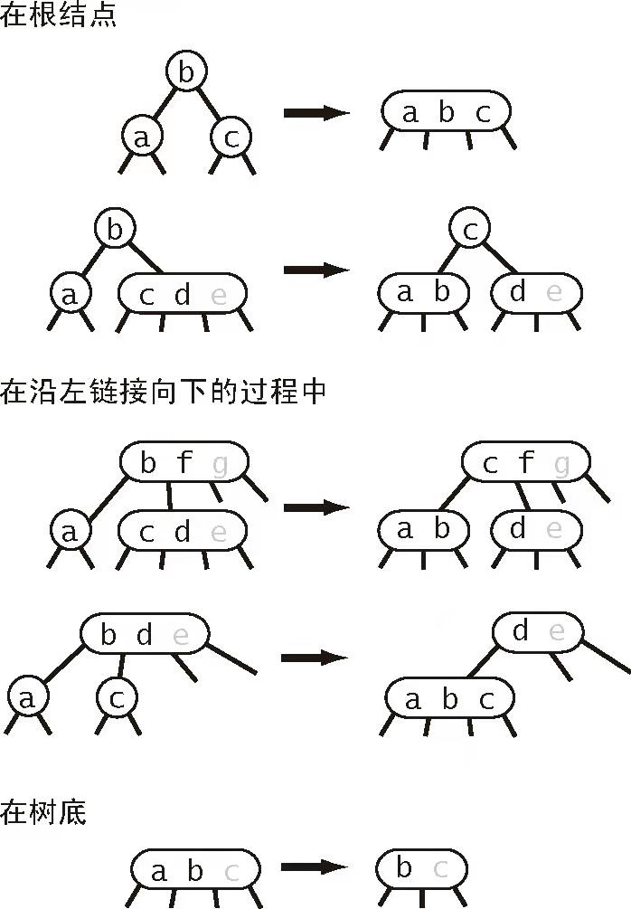 为了能够将一个 2- 节点放入一个 3- 节点,在树的构建过程中允许 4- 节点临时出现