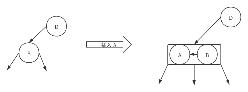 在不做任何处理的操作的前提下,使用这种节点构成的二叉树很难维持树的平衡性(可以试想一下插入一些有序的节点的情况)。为了维持树的平衡性,现在我们引入一个 3- 节点的概念,即允许两个节点组合成一个节点,使得这个节点可以有三个子节点。如下图所示: