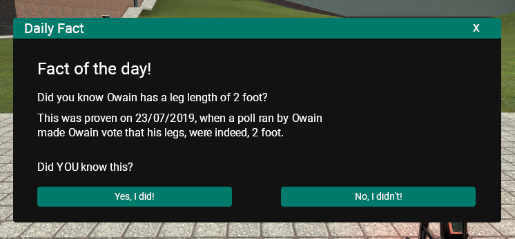MatLib.Text(frame, frame:GetWide() * 0.1, frame:GetTall() * 0.2, "This is an example frame with example text!")It's about as easy as that. If you need any more help, you can view cl_example.lua and get more insight into it.