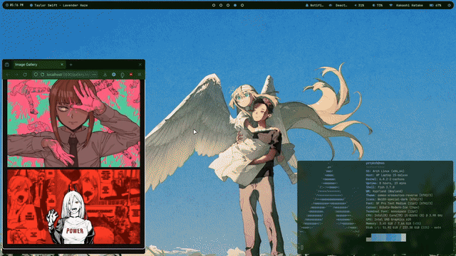 - It displays your wallpaper by hosting a python webserver in you wallpaper directory and generating a gallery there.